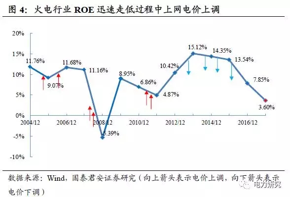 3.2 規(guī)律一:火電行業(yè)ROE迅速走低過(guò)程中電價(jià)多次上調(diào)