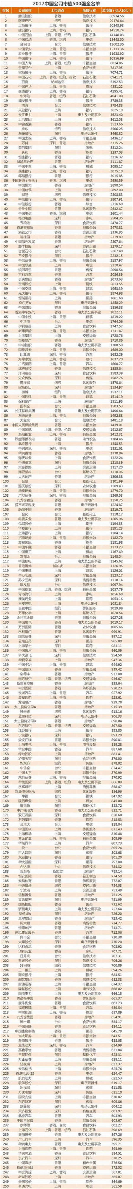 圖說最新中國市值500強:哪些公司入榜了?各行業(yè)龍頭曝光(名單)
