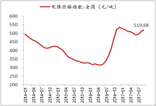 2014-2017.9全國(guó)電煤價(jià)格指數(shù)