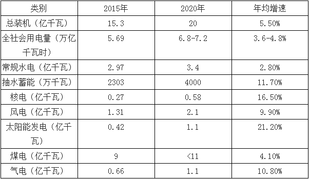 電力“十三五”規(guī)劃目標(biāo)