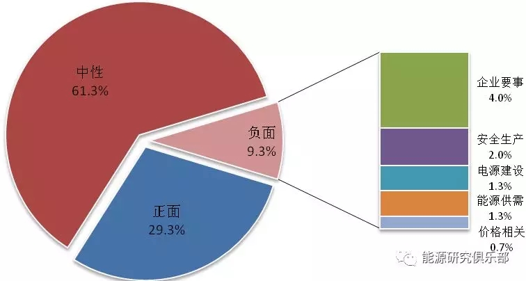 正面信息多是利于行業(yè)健康發(fā)展的政策發(fā)布、行業(yè)發(fā)展信息,如“全國(guó)人大常委會(huì)表決通過(guò)核安全法”“光伏裝機(jī)提前完成‘十三五’規(guī)劃目標(biāo)”“青海首次連續(xù)7日全清潔能源供電”“電力需求側(cè)管理進(jìn)一步加強(qiáng)”等。中性信息多與行業(yè)動(dòng)態(tài)、項(xiàng)目進(jìn)展、會(huì)議通知等相關(guān),多數(shù)屬于信息的正規(guī)傳達(dá)。