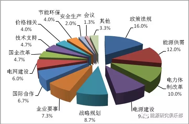綜合看來(lái),熱點(diǎn)領(lǐng)域分布中政策法規(guī)、能源供需、電力體制改革、電源建設(shè)、戰(zhàn)略規(guī)劃等受到較高關(guān)注。其中,政策法規(guī)以16%的比例高居榜首,包含5月“《關(guān)于深化石油天然氣體制改革的若干意見(jiàn)》印發(fā)”、7月“可再生能源綠色電力證書(shū)制度開(kāi)始推行”、9月“全國(guó)人大常委會(huì)表決通過(guò)核安全法”等。