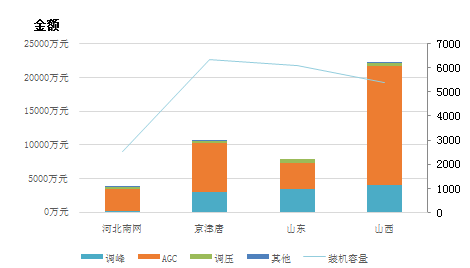 圖7華北區(qū)域分省(地區(qū))電力輔助服務(wù)補(bǔ)償分項費用情況