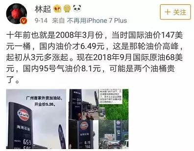 曾經(jīng)有網(wǎng)友拿今天的油價(jià)和10年前進(jìn)行對(duì)比發(fā)現(xiàn),國(guó)際油價(jià)低了,汽油零售價(jià)卻高了,于是得出一個(gè)結(jié)論——可能是油桶貴了。