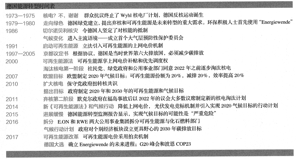 在外界印象里,德國依靠傳統(tǒng)煤炭和領(lǐng)先的核電技術(shù),于二戰(zhàn)后迅速恢復(fù),積累財富建成發(fā)達(dá)的工業(yè)國家。冷戰(zhàn)結(jié)束后,立法強(qiáng)制收購可再生能源。在福島核災(zāi)的拐點,率先提出Energiewende(能源轉(zhuǎn)型)的德國,令這一德語詞匯在短短4年之間成為世界談?wù)撃茉崔D(zhuǎn)型的專有詞匯。時至今日,Energiewende 從最初的定義:逐步淘汰核電并在電力行業(yè)以可再生能源替代化石能源,已延伸出更寬廣的含義,即提高可再生能源在各產(chǎn)業(yè)的發(fā)展應(yīng)用以及實現(xiàn)整個能源產(chǎn)業(yè)鏈的轉(zhuǎn)變.從棄核到減煤,隨后走向可再生能源,德國在不斷試錯、不斷經(jīng)歷挫折。成長為可再生能源占總發(fā)電三分之一的環(huán)保先鋒,