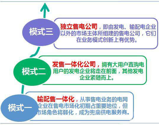中 國的電力產(chǎn)業(yè)市場跟國外有所不同,國外的售電業(yè)務(wù)百分之五十以上由發(fā)輸配售一體化公司所承擔(dān),獨(dú)立售電公司占一部分比重(其中美國的獨(dú)立售電公司發(fā)展較 好,市場份額達(dá)到百分之四十)。而中國的新電改前的售電市場,主要是發(fā)售一體化(主要呈現(xiàn)為大用戶直購電)和輸配售一體化。按照目前的電改原則,是“管住 中間、放開兩頭”,即加大對輸配企業(yè)(也就是電網(wǎng)企業(yè))的監(jiān)管,在發(fā)電和售電側(cè)引入競爭。很明顯,發(fā)輸配售一體化和輸配售一體化都是不受政策鼓勵(lì)的。那 么,接下來,根據(jù)國外的成功經(jīng)驗(yàn),中國售電側(cè)整體發(fā)展模式應(yīng)該是:發(fā)售一體化、獨(dú)立售電公司及初期電網(wǎng)企業(yè)通過力量博弈而短期內(nèi)將會(huì)存在的輸配售一體化模 式。
