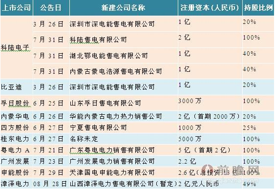 很多上市公司已成立了售電公 司,積極進(jìn)行售電側(cè)的市場布局,如科陸電子、比亞迪、孚日股份、四方股份等民營上市公司積極運(yùn)用社會(huì)資本投資成立售電公司;而內(nèi)蒙華電、桂東電力、粵電 力、廣州發(fā)展、申能股份、漳澤電力等發(fā)電公司也都相繼成立了自己的售電公司,具體情況如下表所示:
