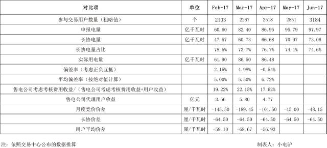 雖然2017年2-6月均有不同程度的長協(xié)削減,但基本最大削減量在5000萬千瓦時左右徘徊,假如本問第1個觀點成立的話,再加上部分售電公司將長協(xié)電量囤在下半年以及可準入用戶逐漸減少的前