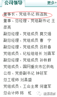 重慶電力公司董事長換將。原北京電力交易中心主任陳連凱調(diào)任重慶電力公司董事長、黨組書記,國網(wǎng)重慶電力公司官網(wǎng)已經(jīng)更新公司領(lǐng)導(dǎo)名,陳連凱并任國網(wǎng)重慶市電力公司法人。