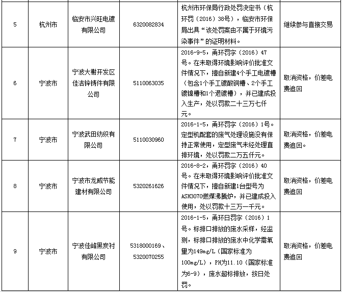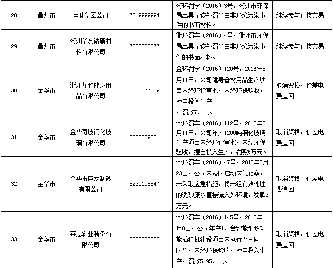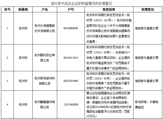近期,浙江能源監(jiān)管辦組織開展了專項監(jiān)管整改情況“回頭看”現(xiàn)場檢查,發(fā)現(xiàn)86家企業(yè)在限定期限內(nèi)曾因環(huán)境污染事件受到處罰,認(rèn)為是違規(guī)參加了2017年電力直接交易試點。接浙江能源監(jiān)管辦情況反映后,我委組織各市對反映的情況進(jìn)行了核查,有關(guān)核查結(jié)果和處理意見如下: