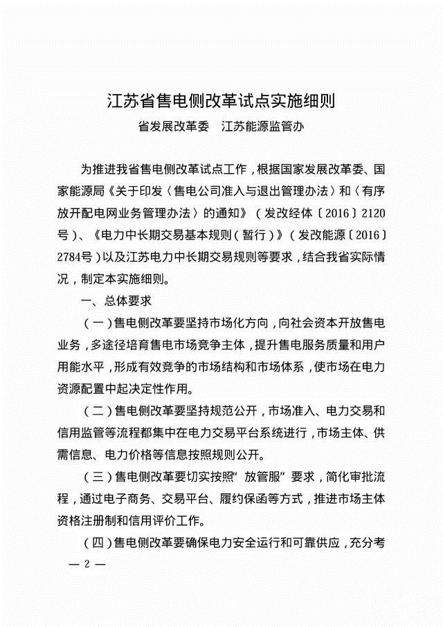 江蘇售電側(cè)改革試點實施細(xì)則、增量配電業(yè)務(wù)改革試點實施細(xì)則正式發(fā)布!
