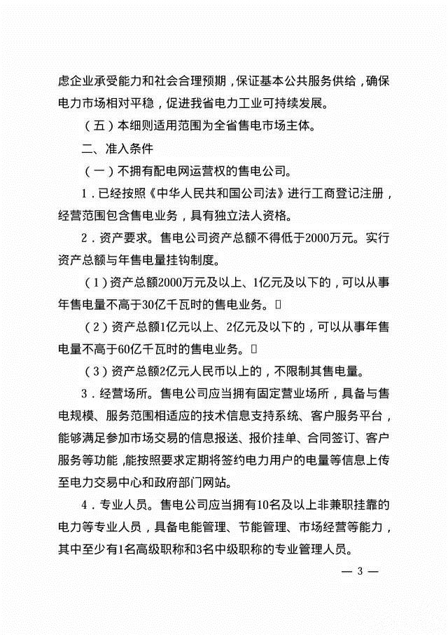 細(xì)則適用于全省售電市場主體。