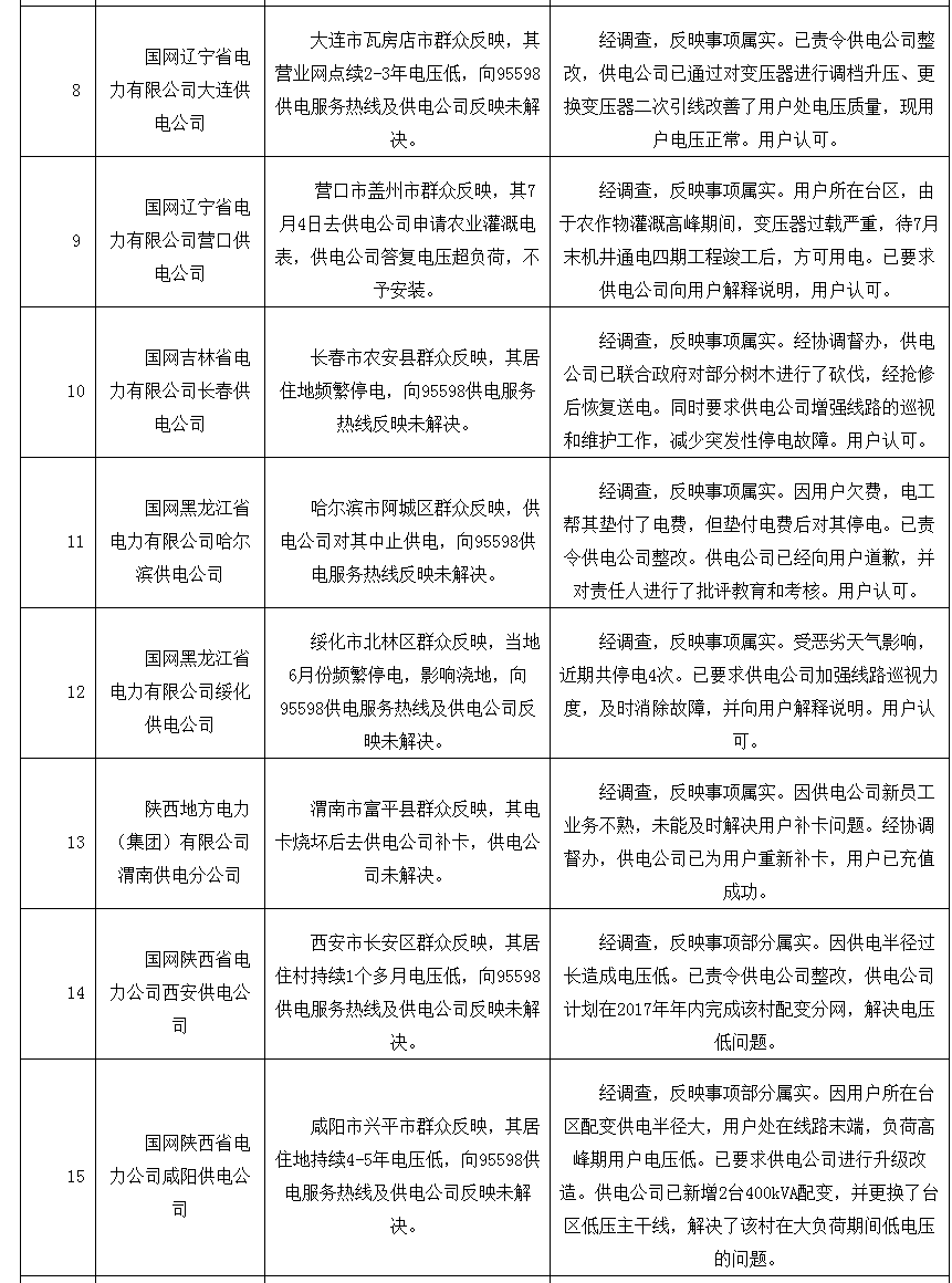 對非供電企業(yè)責任造成的城中村用電、臺風斷電等問題,相關供電企業(yè)積極解決群眾訴求。如:廣州供電局有限公司大力推進城中村用電改造。廣東電網(wǎng)有限責任公司多措并舉,積極消除臺風等自然災害影響。