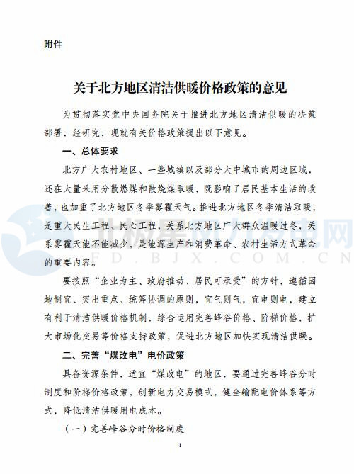 附件:關(guān)于北方地區(qū)清潔供暖價格政策的意見