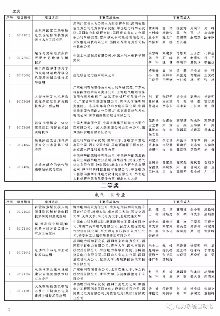 2017年度中國電力科學(xué)技術(shù)獎(jiǎng)擬授獎(jiǎng)項(xiàng)目公示(共116項(xiàng))