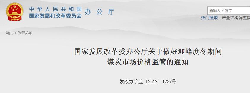 近日發(fā)改委辦公廳發(fā)布《關(guān)于做好迎峰度冬期間煤炭市場(chǎng)價(jià)格監(jiān)管的通知》。通知稱,各地尤其是煤炭主產(chǎn)區(qū)、主要煤炭港口所在地要立即行動(dòng),組織部署檢查力量深入開展煤炭市場(chǎng)價(jià)格巡查。嚴(yán)厲打擊煤炭行業(yè)哄抬價(jià)格、價(jià)格壟斷行為。國(guó)家發(fā)展改革委將對(duì)重點(diǎn)地區(qū)檢查工作進(jìn)行督查,并派出檢查組,對(duì)重點(diǎn)地區(qū)和重點(diǎn)企業(yè)進(jìn)行直接檢查。