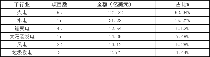 表3:2017年1-10月電力各子行業(yè)境外項(xiàng)目簽約情況