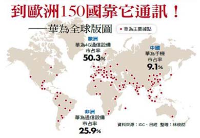 它的營收,7成來自海外,比聯(lián)想集團的4.2成還要高?!督?jīng)濟學人》指出,華為在150多個國家擁有5百多名客戶,超過20億人每天使用華為的設備通信,也就是說,全世界有三分之一的人口在使用華為的服務。即使4G技術領先的歐洲,華為也有過半的市占率。