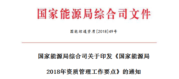 國(guó)家能源局2018年資質(zhì)管理工作要點(diǎn)