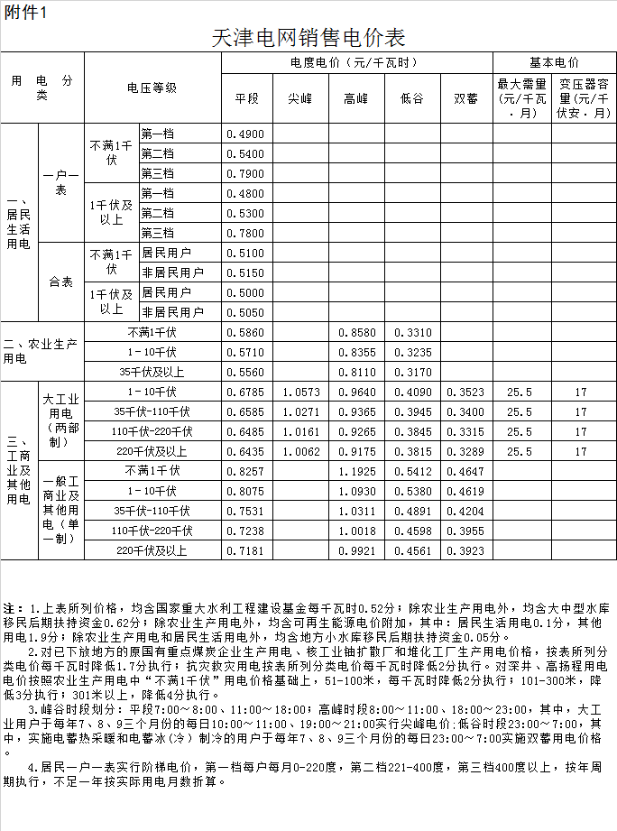 附件:1.天津電網(wǎng)銷(xiāo)售電價(jià)表