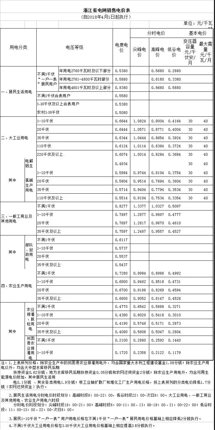 附件:1.浙江省電網(wǎng)銷售電價表