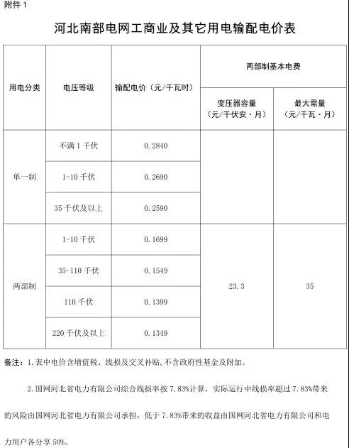 附件:1.河北省南部電網(wǎng)工商業(yè)及其它用電輸配電價表