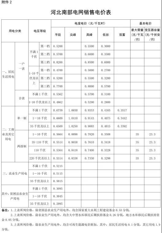 2.河北省南部電網(wǎng)銷售電價表