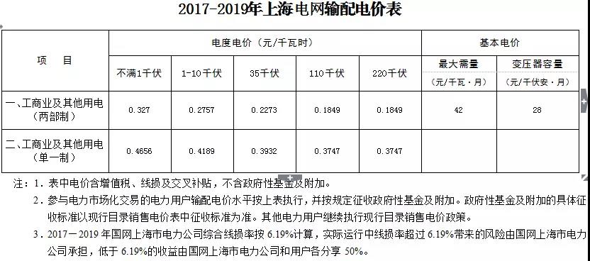 2、2017-2019年上海電網(wǎng)輸配電價表