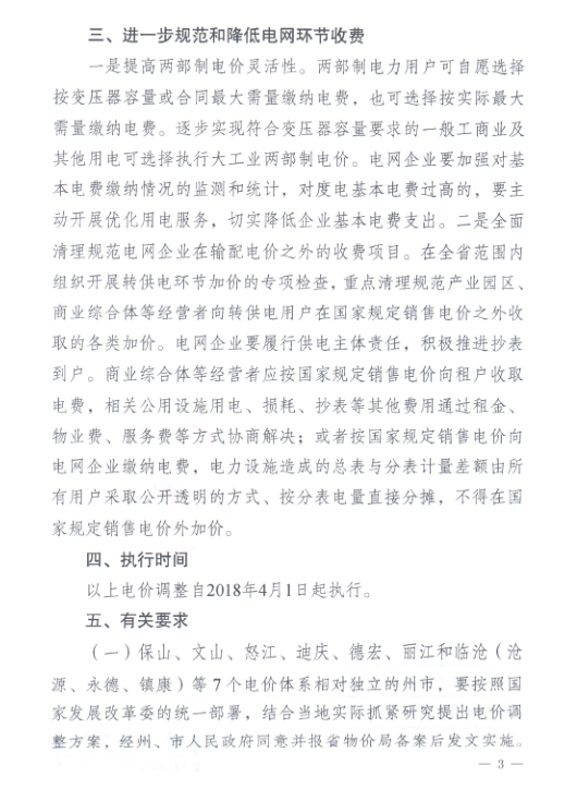上述價格調(diào)整自2018年4月1日起執(zhí)行。河北北部電網(wǎng)輸配電價、工商業(yè)及其它電價不作調(diào)整。