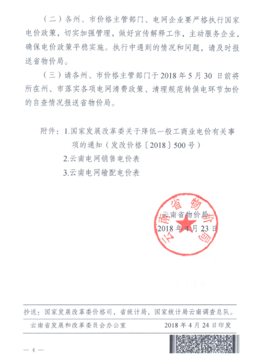 一、自2018年4月1日起,降低我省一般工商業(yè)及其他用電目錄電價和輸配電價每千瓦時3.3分錢(含稅)。其中,電力用戶4月1日及以后的用電量,可按對應(yīng)抄表周期內(nèi)日平均用電量乘以應(yīng)執(zhí)行調(diào)整后電價的天數(shù)確定。