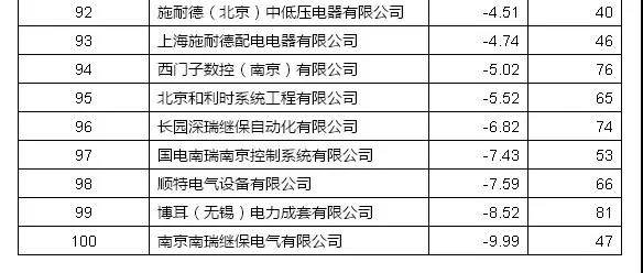 利潤(rùn)率降低超過(guò)1個(gè)百分點(diǎn)的有31家,降低超過(guò)5個(gè)百分點(diǎn)的有7家,利潤(rùn)率居首位的南京南瑞繼保電氣有限公司利潤(rùn)率下降百分點(diǎn)最大為下降9.99個(gè)百分點(diǎn)。