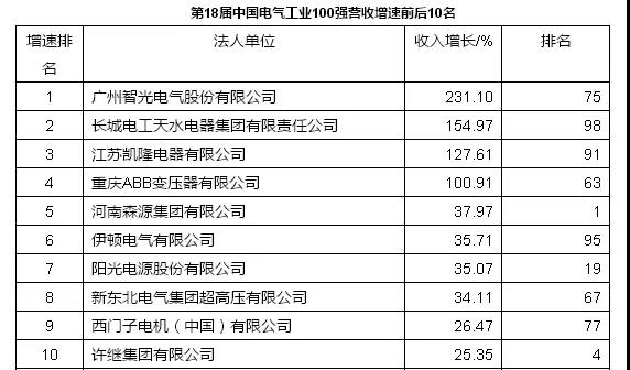 第18屆中國(guó)電氣工業(yè)100強(qiáng)綜述