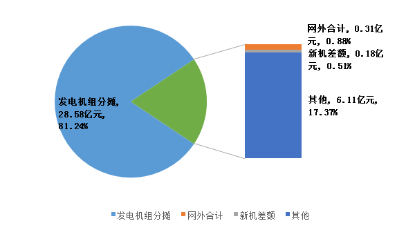 從電力輔助服務(wù)補(bǔ)償費(fèi)用來(lái)源來(lái)看,主要來(lái)自發(fā)電機(jī)組分?jǐn)傎M(fèi)用,合計(jì)28.58億元,占比為81.24%。其他還有,跨省區(qū)(網(wǎng)外)輔助服務(wù)補(bǔ)償分?jǐn)傎M(fèi)用合計(jì)0.31億元,新機(jī)差額資金0.18億元,考核等其他費(fèi)用6.11億元,無(wú)分?jǐn)倻p免費(fèi)用(見(jiàn)圖4)