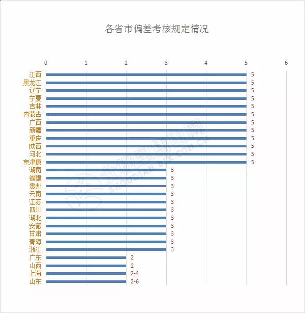 進(jìn)入2018年,很多省份發(fā)布了電力交易規(guī)則,并對偏差考核情況也做出調(diào)整,截至目前,從已公布偏差考核范圍的27個(gè)省市來看,5%的偏差考核數(shù)量最大,全國有12個(gè)省區(qū)市實(shí)行,其次為實(shí)行3%以內(nèi)免考核,為11個(gè)省市。廣東和山西實(shí)行2%免考核,國際化金融之都上海雖然雖然還未放開售電公司的注冊,但偏差考核已確定了±4%-±2%,(注:考慮到7月至9月為暑熱季節(jié),用電量比較高,偏差考核調(diào)整為±4%,其他月份為±2%),而用電大省實(shí)行的是6%-2%的彈性范圍。