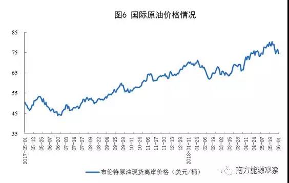 5月份,原油價格震蕩上行,一度越過80美元。截至5月31日,價格為76.45美元/桶,比4月底上漲0.53美元/桶。