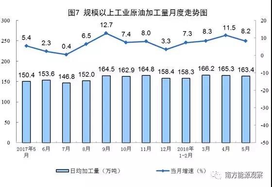 5月份,規(guī)模以上工業(yè)原煤、原油、天然氣生產(chǎn)基本平穩(wěn),原油加工量增速有所放緩,電力生產(chǎn)繼續(xù)加快。