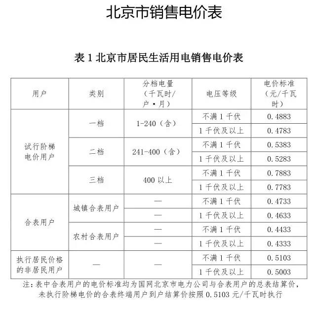 注: 1.表中電價(jià)含增值稅、線損及交叉補(bǔ)貼,不含政府性基金及附加。