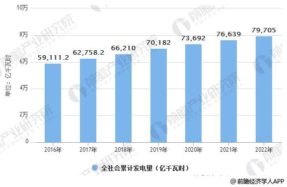2016-2022年全社會累計發(fā)電量統(tǒng)計情況及預(yù)測