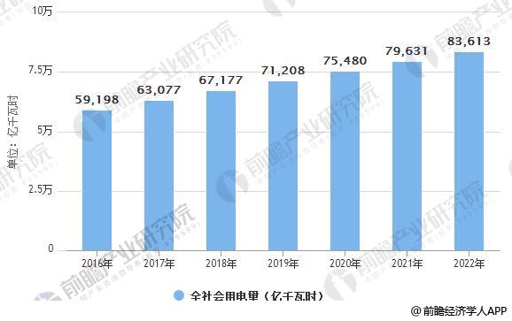 2016-2022年全社會用電量統(tǒng)計情況及預(yù)測