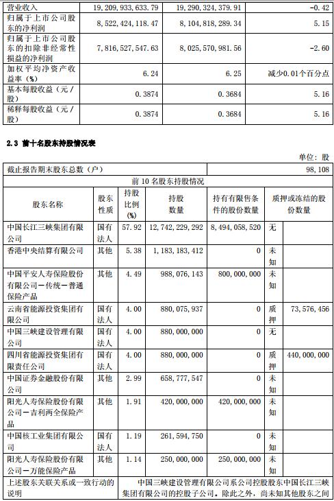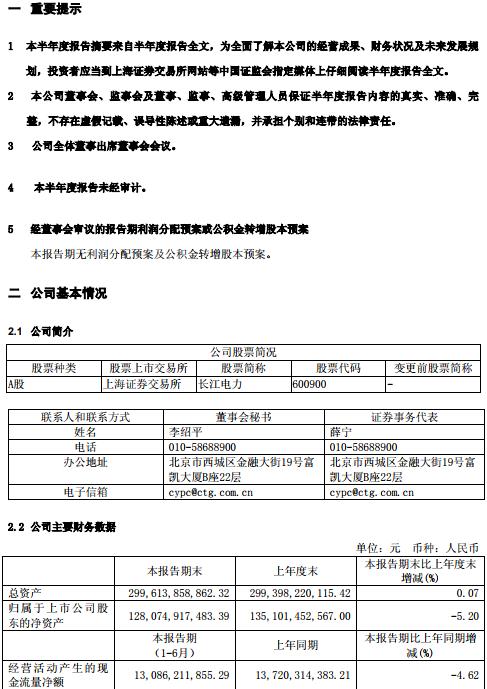半年報(bào)丨長(zhǎng)江電力上半年?duì)I業(yè)收入192.1億元 利潤(rùn)總額突破百億