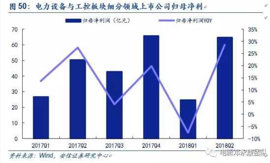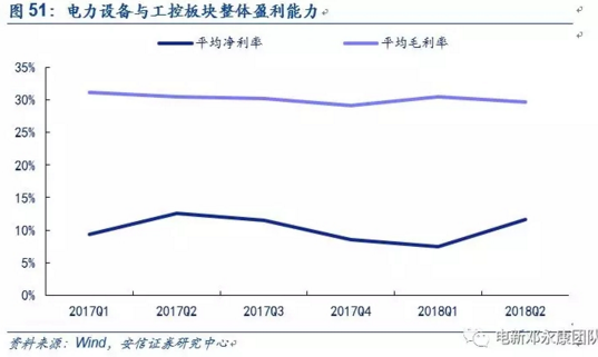 電力設(shè)備與工控板塊上半年業(yè)績表現(xiàn)平穩(wěn),低壓電器與配網(wǎng)最為亮眼:2018年上半年,電力設(shè)備板塊38家上市公司共實現(xiàn)歸母凈利潤89.19億元,同比增長16.06%。從細分板塊來看,低壓電器、配網(wǎng)和電纜的表現(xiàn)較為突出,大部分企業(yè)實現(xiàn)凈利潤的同比高增長,其中低壓電器和配網(wǎng)的毛利率同步上升。工控板塊有所分化,平臺型公司匯川技術(shù)和麥格米特以及產(chǎn)品型公司信捷電氣依然具備強競爭力。