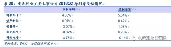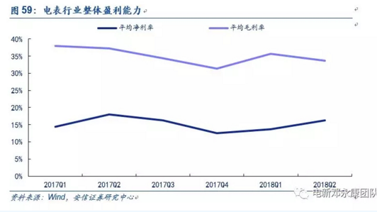 從整從體盈利水平來看,電表行業(yè)的毛利率水平2017年四季度開始回升基本保持在35%左右,凈利率方面則在持續(xù)提升。