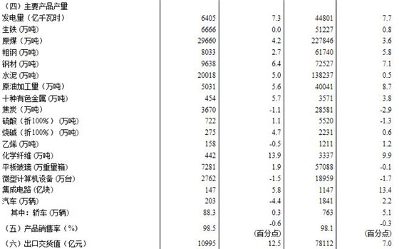 (1)規(guī)模以上工業(yè)增加值及其分類項目增長速度按可比價計算,為實際增長速度;其他指標除特殊說明外,均按現(xiàn)價計算,為名義增長速度。