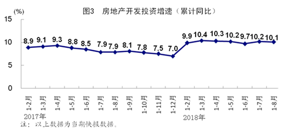 1-8月份,全國固定資產(chǎn)投資(不含農(nóng)戶)415158億元,同比增長5.3%,增速比1-7月份回落0.2個百分點。其中,民間投資259954億元,增長8.7%。分產(chǎn)業(yè)看,第一產(chǎn)業(yè)投資同比增長14.2%;第二產(chǎn)業(yè)投資增長4.3%,其中制造業(yè)投資增長7.5%,比1-7月份加快0.2個百分點;第三產(chǎn)業(yè)投資增長5.5%,其中基礎(chǔ)設(shè)施投資增長4.2%。高技術(shù)制造業(yè)、裝備制造業(yè)投資同比分別增長12.9%和9.2%,增速分別比全部投資快7.6和3.9個百分點。1-8月份,全國房地產(chǎn)開發(fā)投資76519億元,同比增長10.1%。全國商品房銷售面積102474萬平方米,增長4.0%;全國商品房銷售額89396億元,增長14.5%。