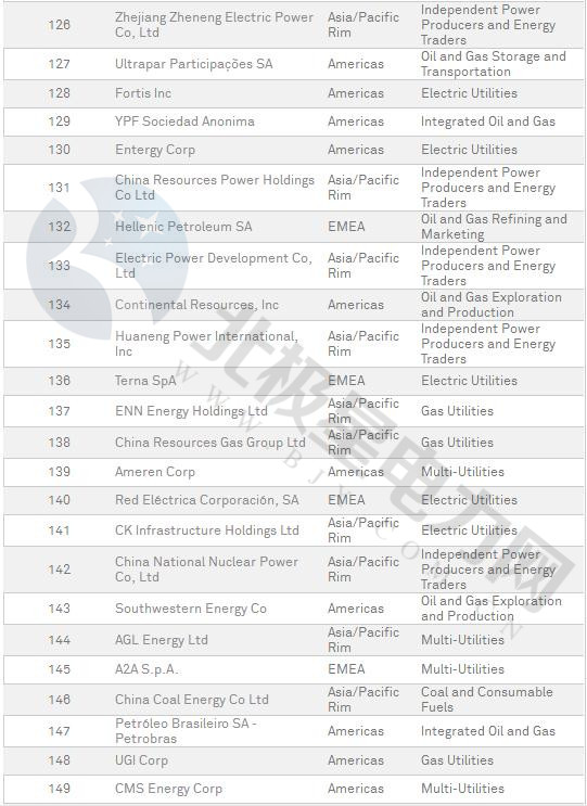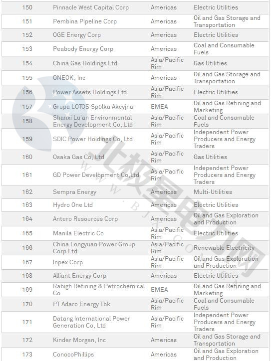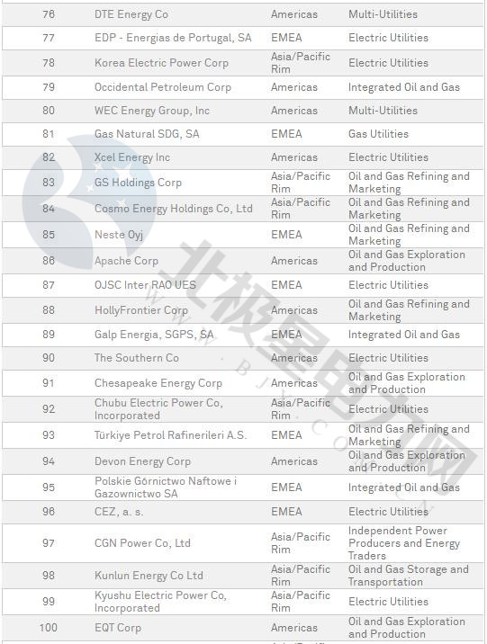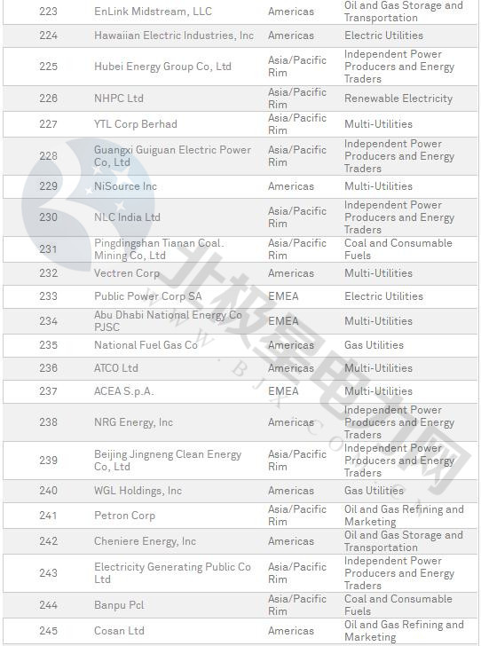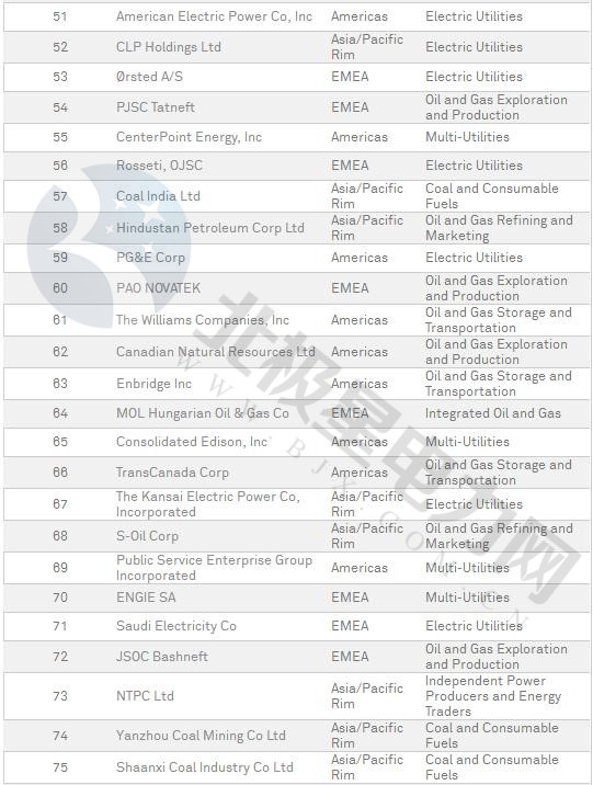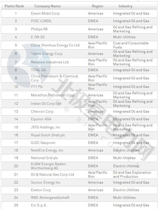 普氏2018年全球能源公司250強(qiáng)榜單出爐(附全名單)
