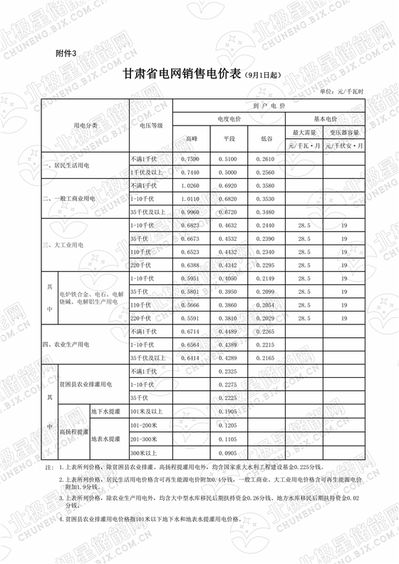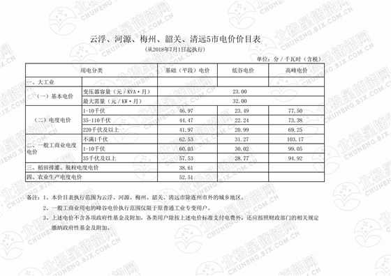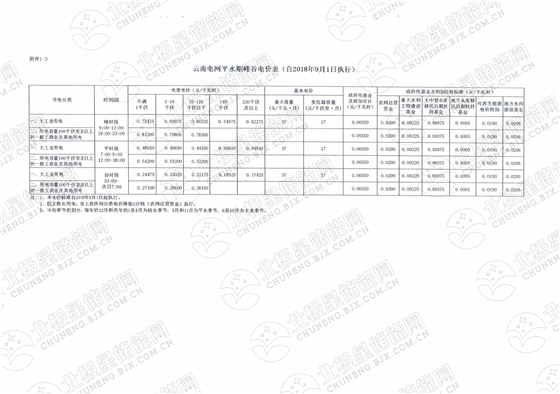 說(shuō)明:圖中標(biāo)注數(shù)據(jù)為不滿1KV電壓等級(jí)峰谷價(jià)差