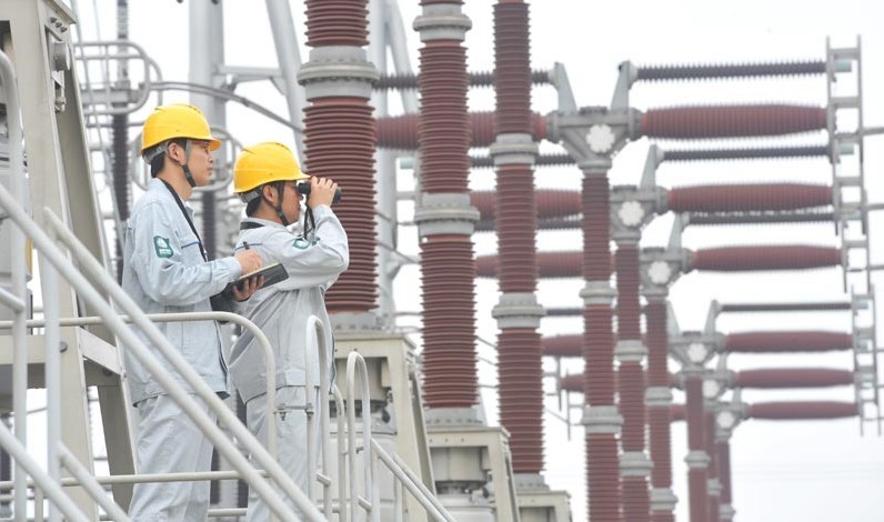 據(jù)統(tǒng)計,今年1月至8月份四川錦屏水電站——蘇州的±800千伏特高壓輸電網(wǎng)累計輸送電量超過128億千瓦時,最大輸送負(fù)荷達(dá)483萬千瓦,占江蘇全部區(qū)外來電負(fù)荷的三分之一以上。遠(yuǎn)方清潔水電輸入江蘇,成為當(dāng)?shù)赜行?zhàn)勝持續(xù)高溫天氣的功勛電能。今夏持續(xù)高溫,江蘇電網(wǎng)用電負(fù)荷屢創(chuàng)新高,江蘇最大用電負(fù)荷達(dá)到8141萬千瓦,比2012年增長12.6%。江蘇因此成為繼廣東省之后第二個最大用電負(fù)荷超8000萬千瓦的省份。圖為8月29日,運行人員正在±800千伏特高壓蘇州換流站內(nèi)巡視設(shè)備。