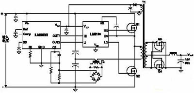 圖1以典型的通信電源總線轉(zhuǎn)換器設(shè)計中的LM5033/LM5100芯片組為例,在該設(shè)計中,40~60V輸入總線電壓通過一個隔離變壓器,向下轉(zhuǎn)換至10~15V中間總線電壓,并分配至下游安裝在板上的負(fù)載點模塊中。通過維持LM5033雙控制器的輸出在一個恒定的50%占空比,實現(xiàn)了最高的電源效率,這樣做降低了開關(guān)FET和同步整流器上的電流和電壓應(yīng)力,同時改善了變壓器的線圈使用率。