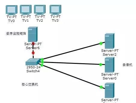 單臺(tái)數(shù)字監(jiān)控矩陣上會(huì)有很多網(wǎng)口,只要將這些網(wǎng)口全部連到核心交換機(jī)上。