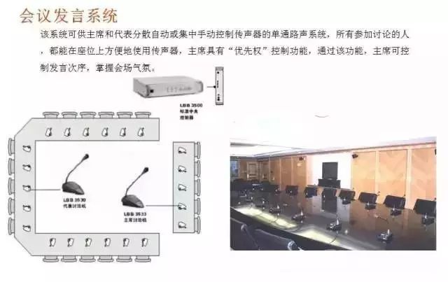 該系統可供主席和代表分散自動或集中手動控制傳聲器的單通路聲系統,所有參加討論的人,都能在座位上方便地使用傳聲器,主席具有“優(yōu)先權”控制功能,通過該功能,主席可控制發(fā)言次序,掌握會場氣氛。
